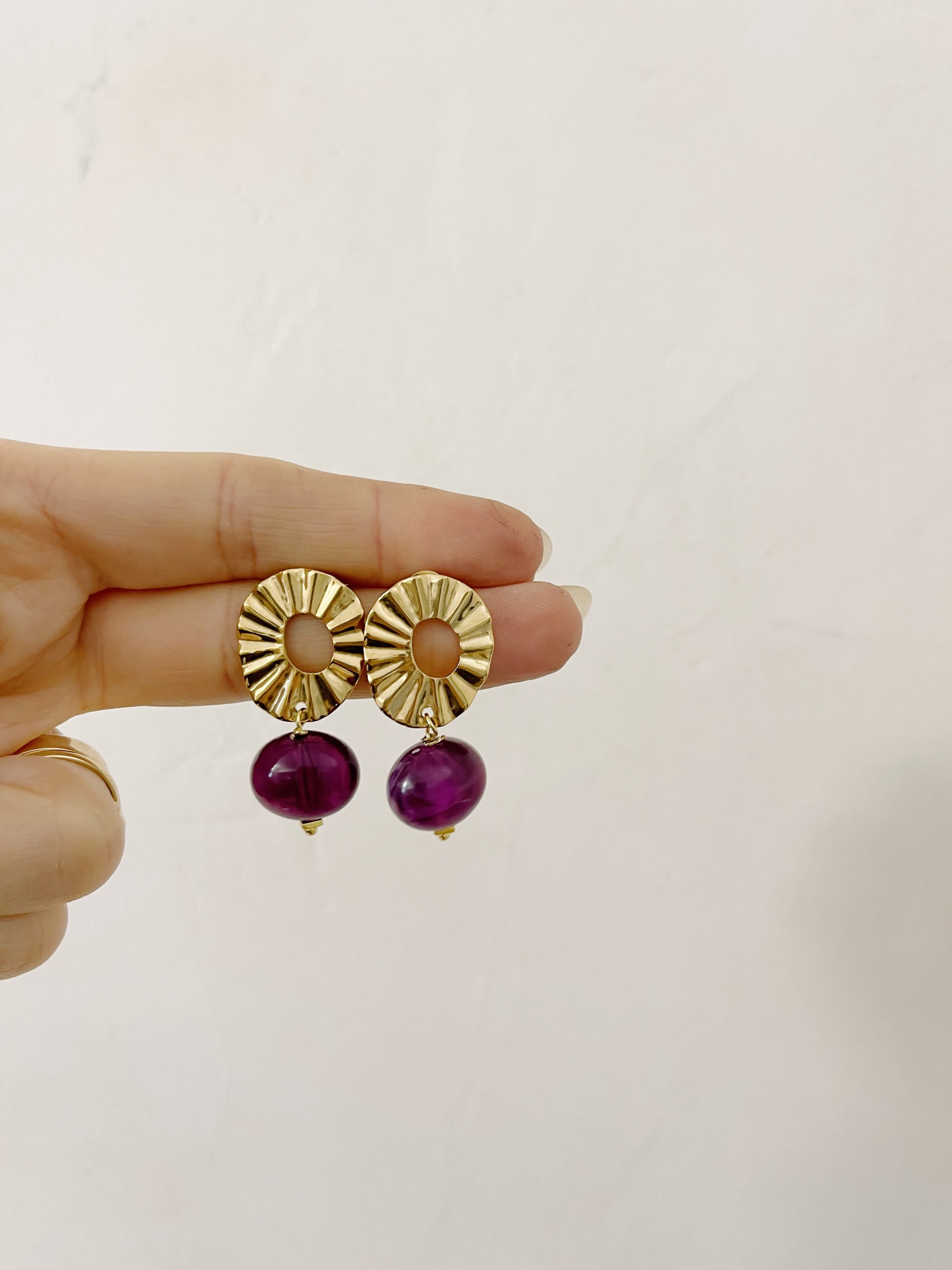 Les BO EDEN sont composées d'une monture tige en acier inoxydable doré et d'une perle en résine prune.