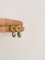 Les bo LUCIA // sont composées d’une attache en acier inoxydable à laquelle est rattachée un pendant porte en acier inoxydable également orné d’une pierre de Jaspe Dalmatien