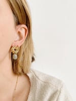 Les bo LUCIA // sont composées d’une attache en acier inoxydable à laquelle est rattachée un pendant porte en acier inoxydable également orné d’une pierre de Labradorite