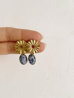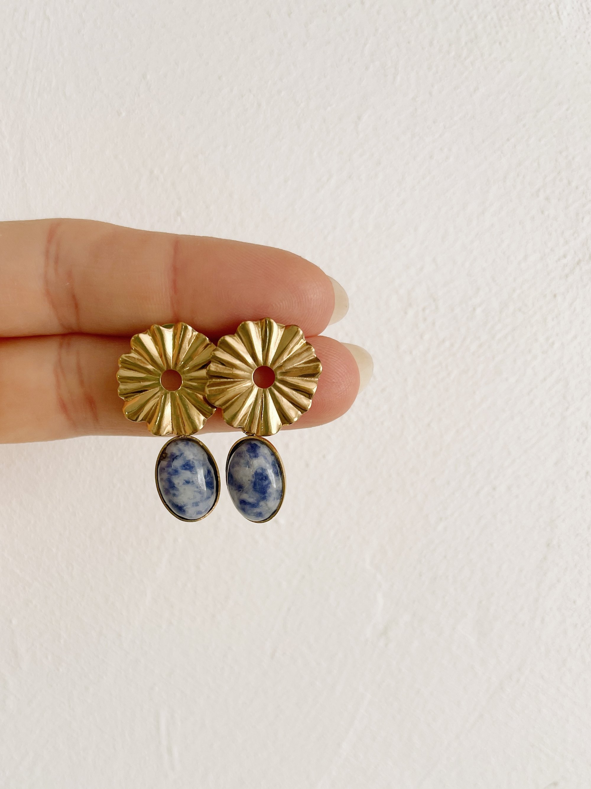 Les bo LUCIA // sont composées d’une attache en acier inoxydable à laquelle est rattachée un pendant porte en acier inoxydable également orné d’une pierre de Sodalite