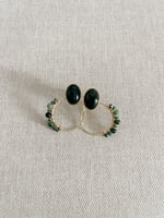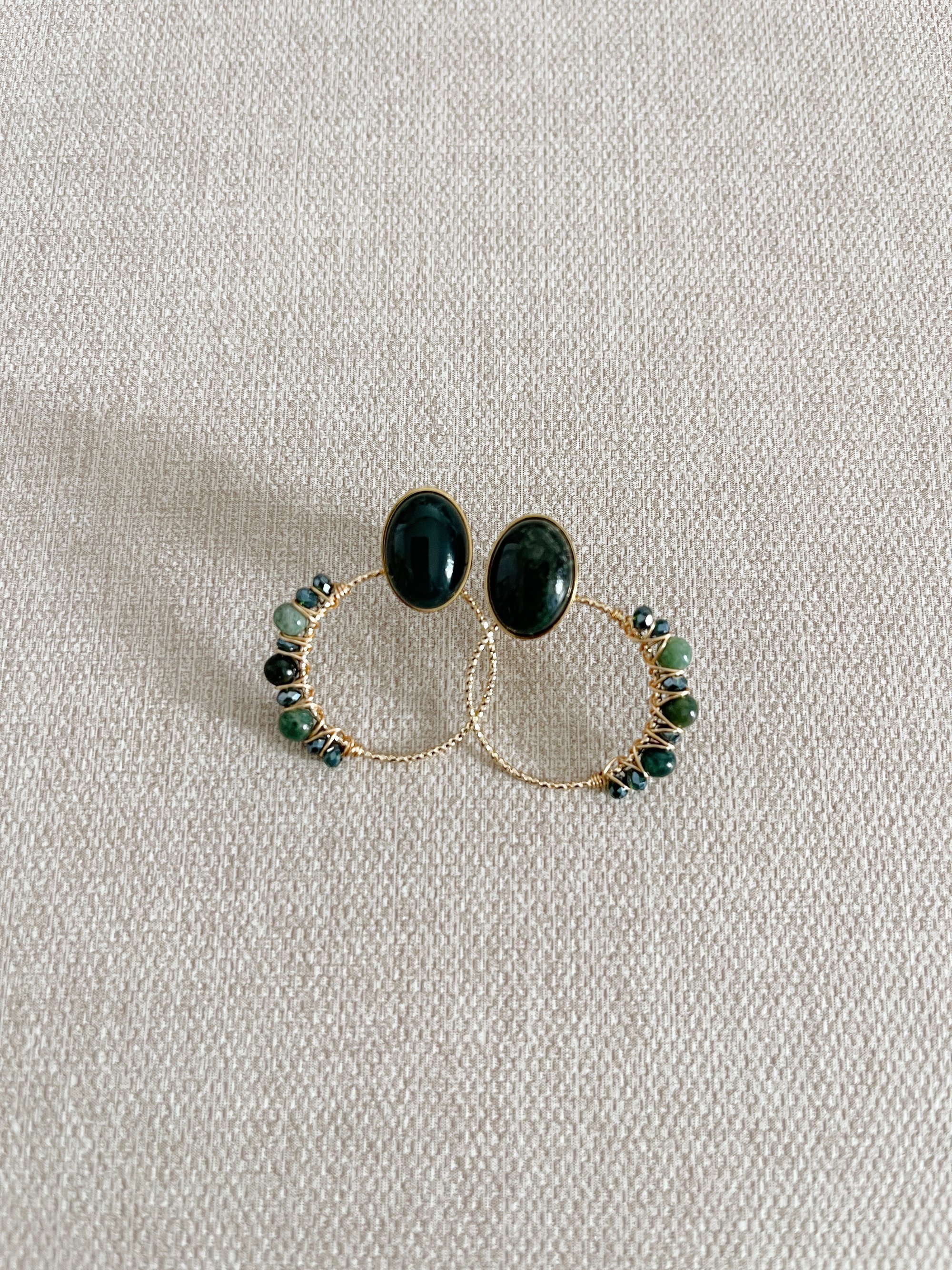 Les BO NIL sont composées d'une pierre d'Agate Indienne sur un support en acier inoxydable et d'un pendent doré à l'or fin et orné de pierres d'Agate Indienne à placer derrière le lobe.