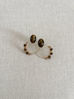 Les BO NIL sont composées d'une pierre d'Oeil de Tigre sur un support en acier inoxydableet d'un pendent doré à l'or fin et orné de pierres d'Oeil de Tigre à placer derrière le lobe.