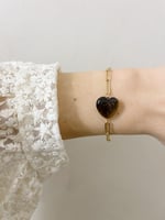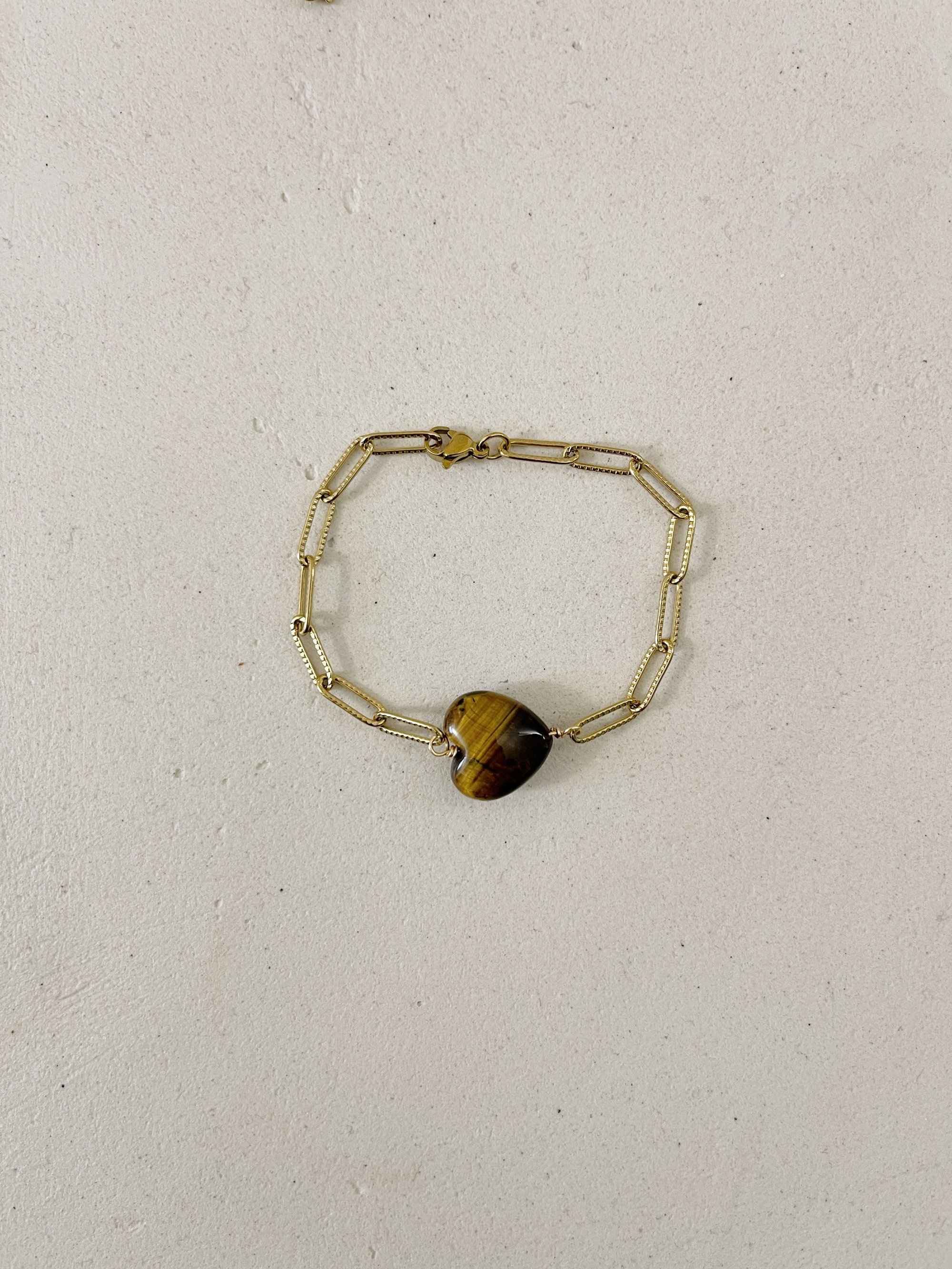 Le bracelet Cœur est composé d’une chaîne maillons ovales et d’un cœur en œil de tigre