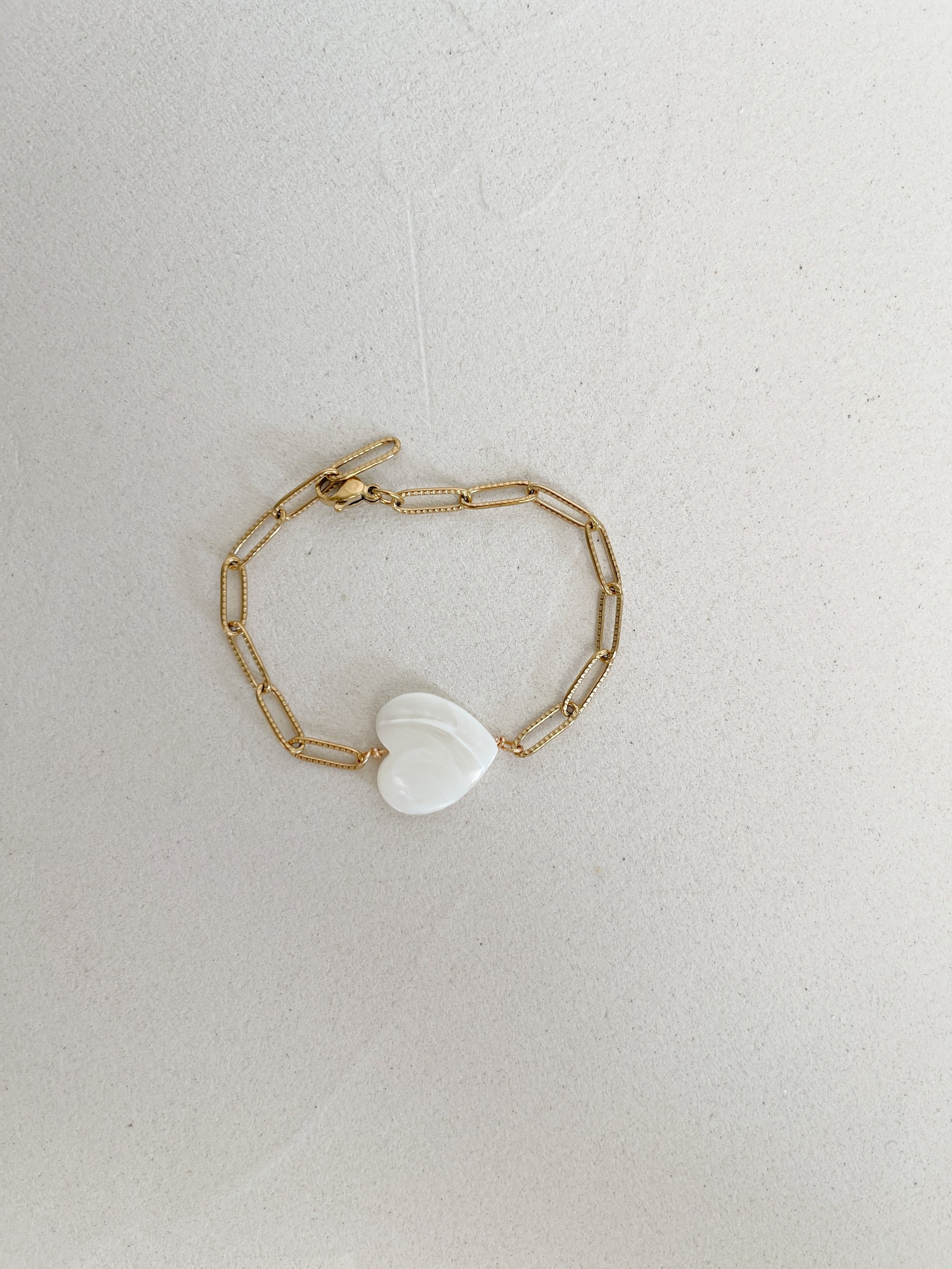 Le bracelet Cœur est composé d’une chaîne maillons ovales et d’un cœur en Nacre