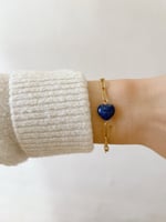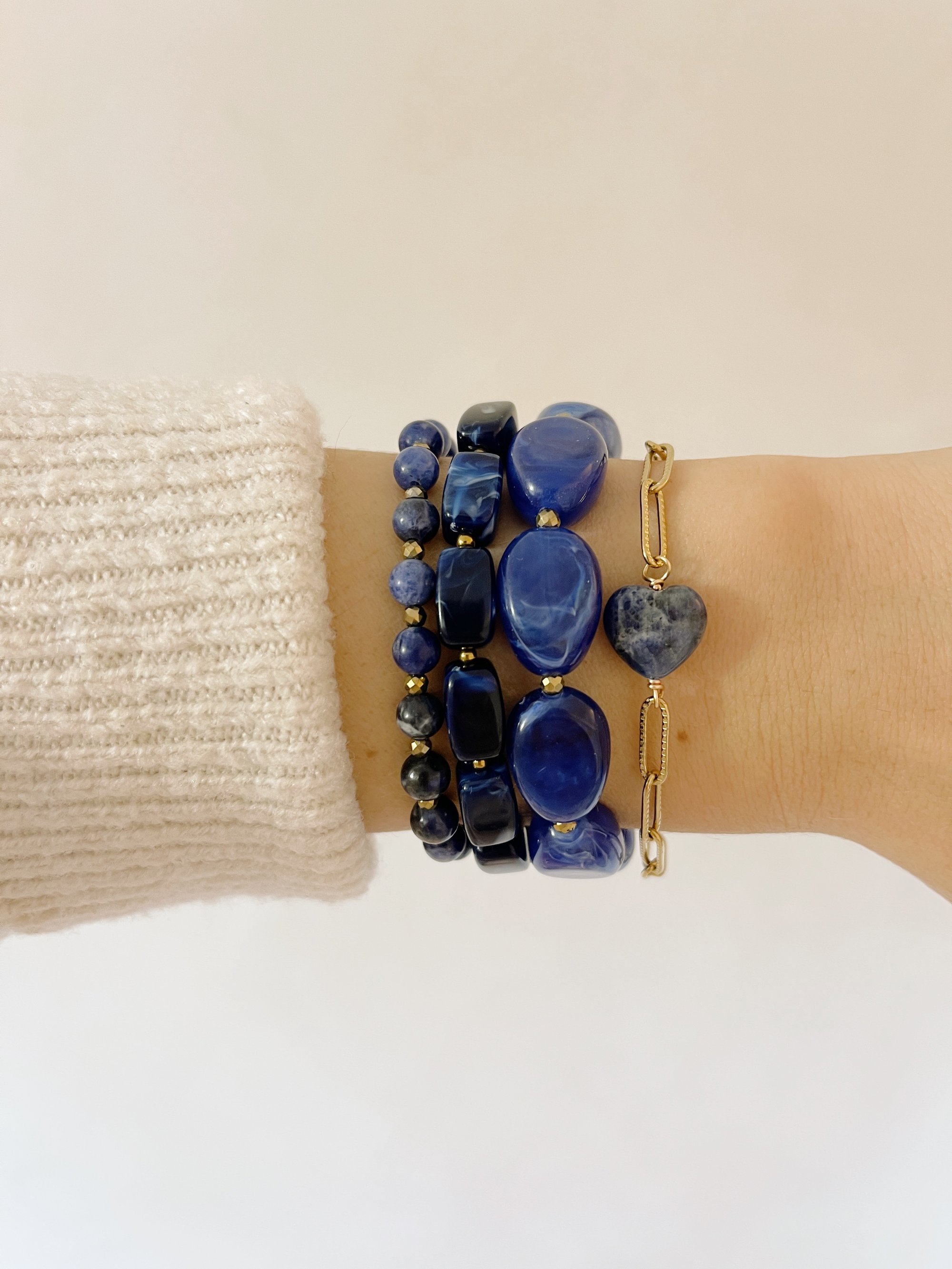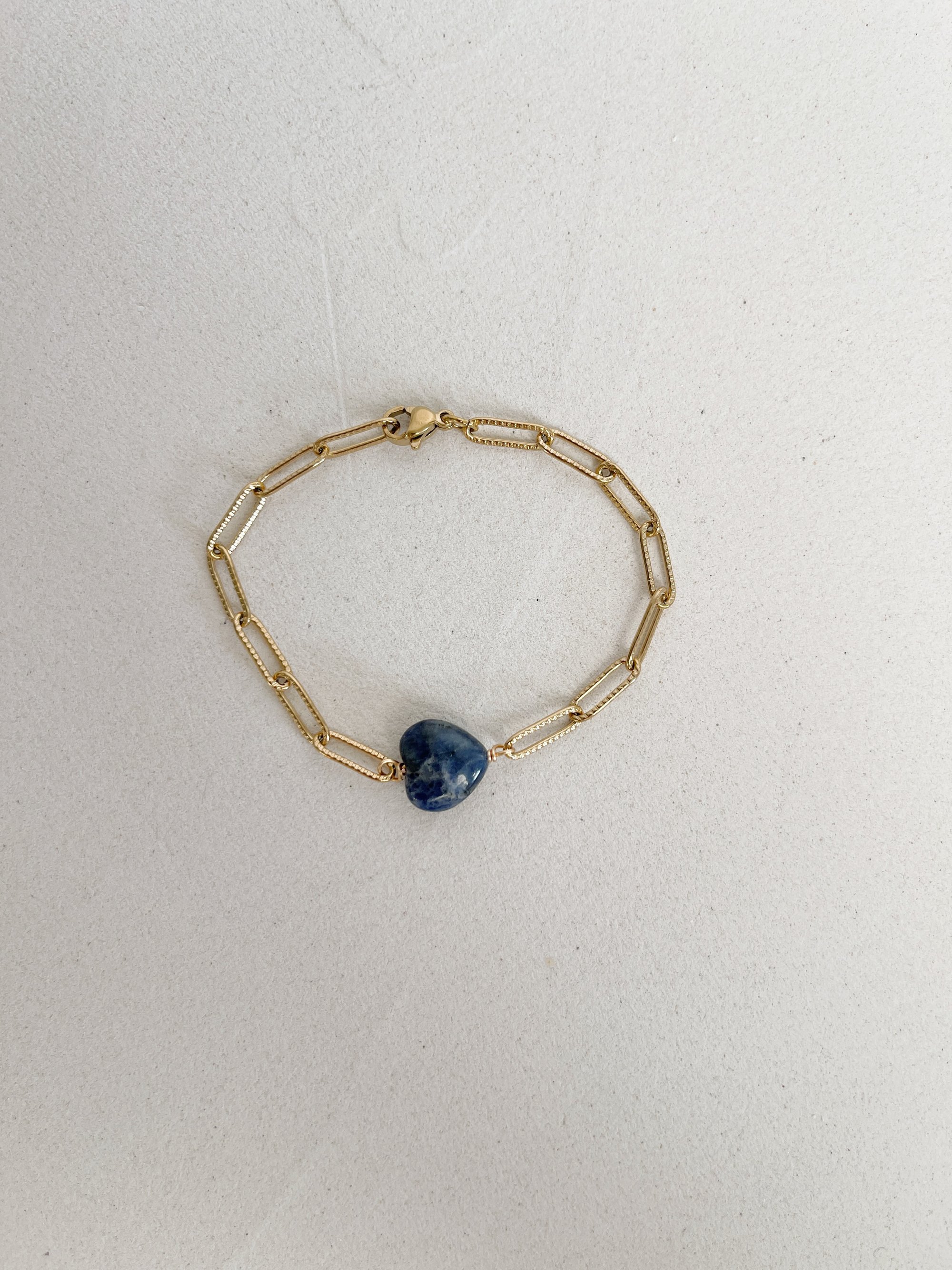 Le bracelet Cœur est composé d’une chaîne maillons ovales et d’un cœur en Sodalite