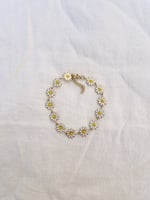 Le bracelet MARGA est composé d’une chaîne faite de petites marguerites en acier inoxydable émaillé