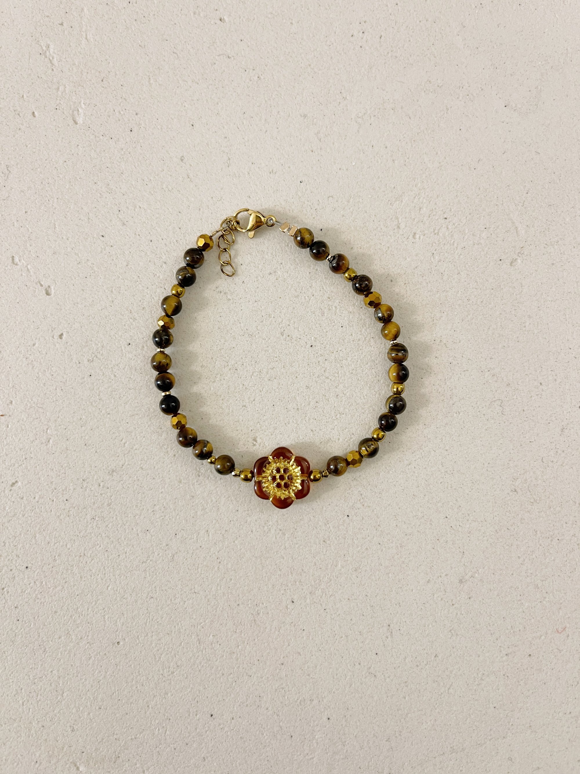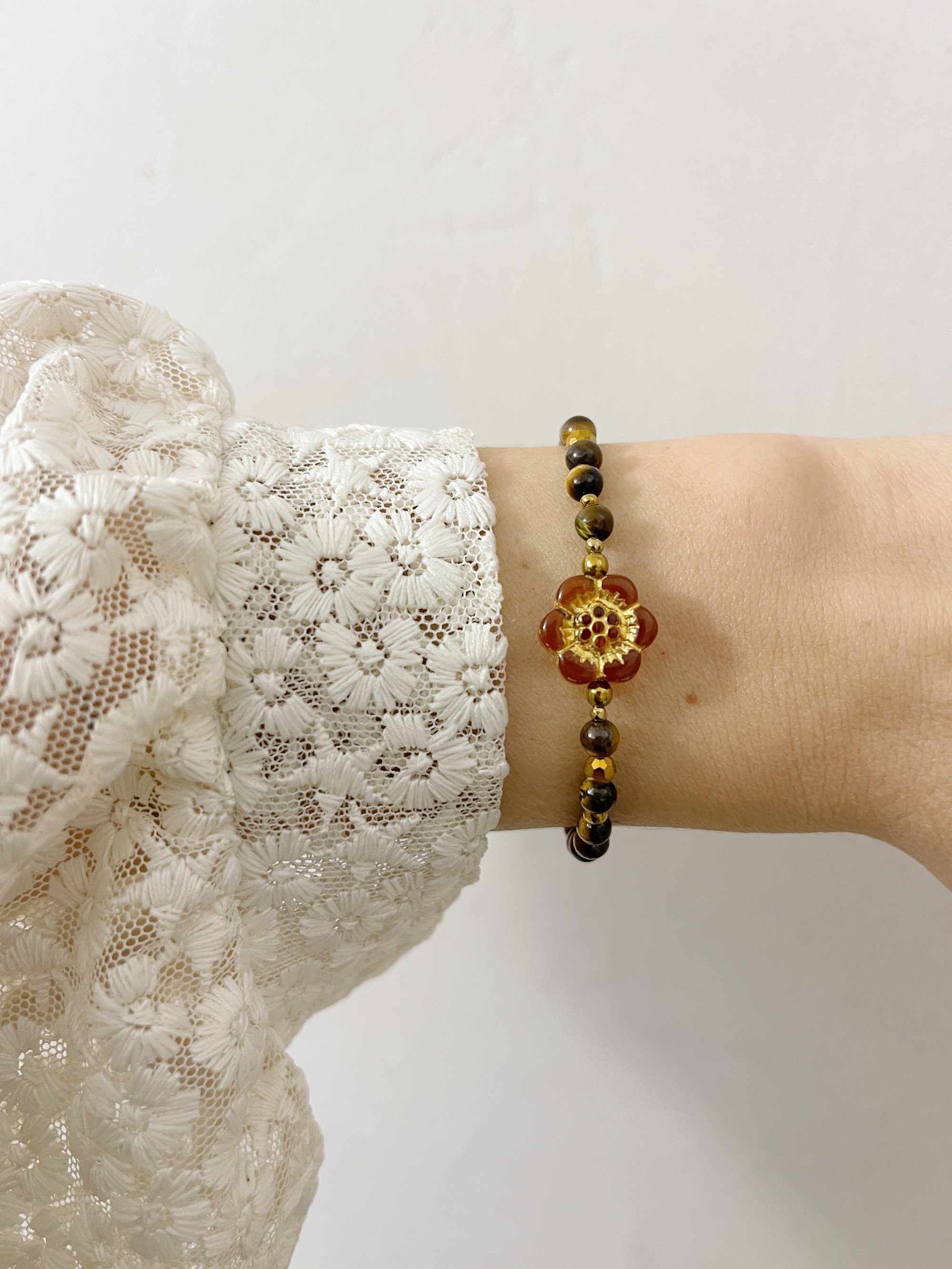 Bracelet PEONIE // Fleur Ambre et perles œil de tigre