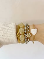 Bracelet PEONIE // Fleur beige et perles Jaspe Dalmatien