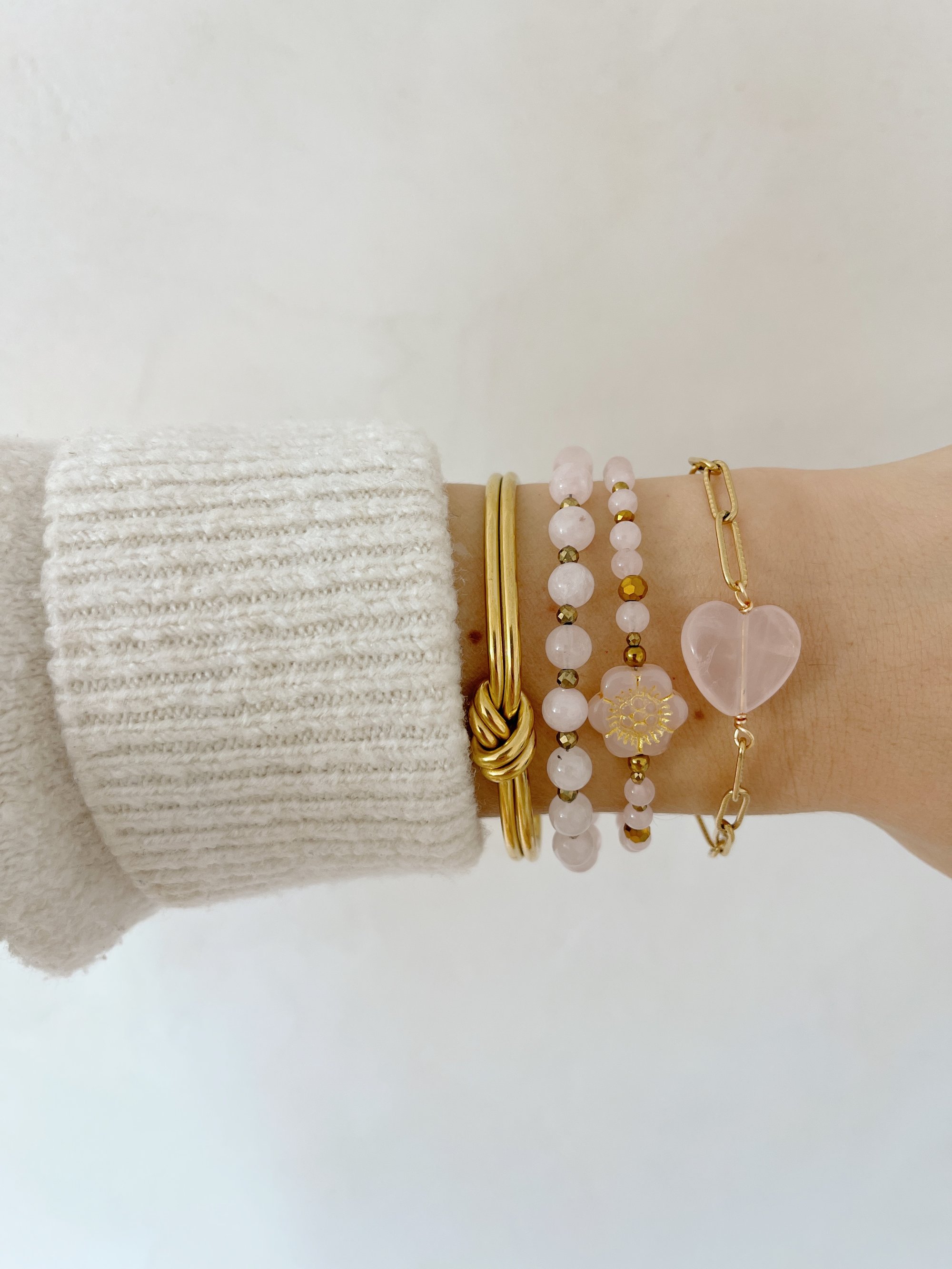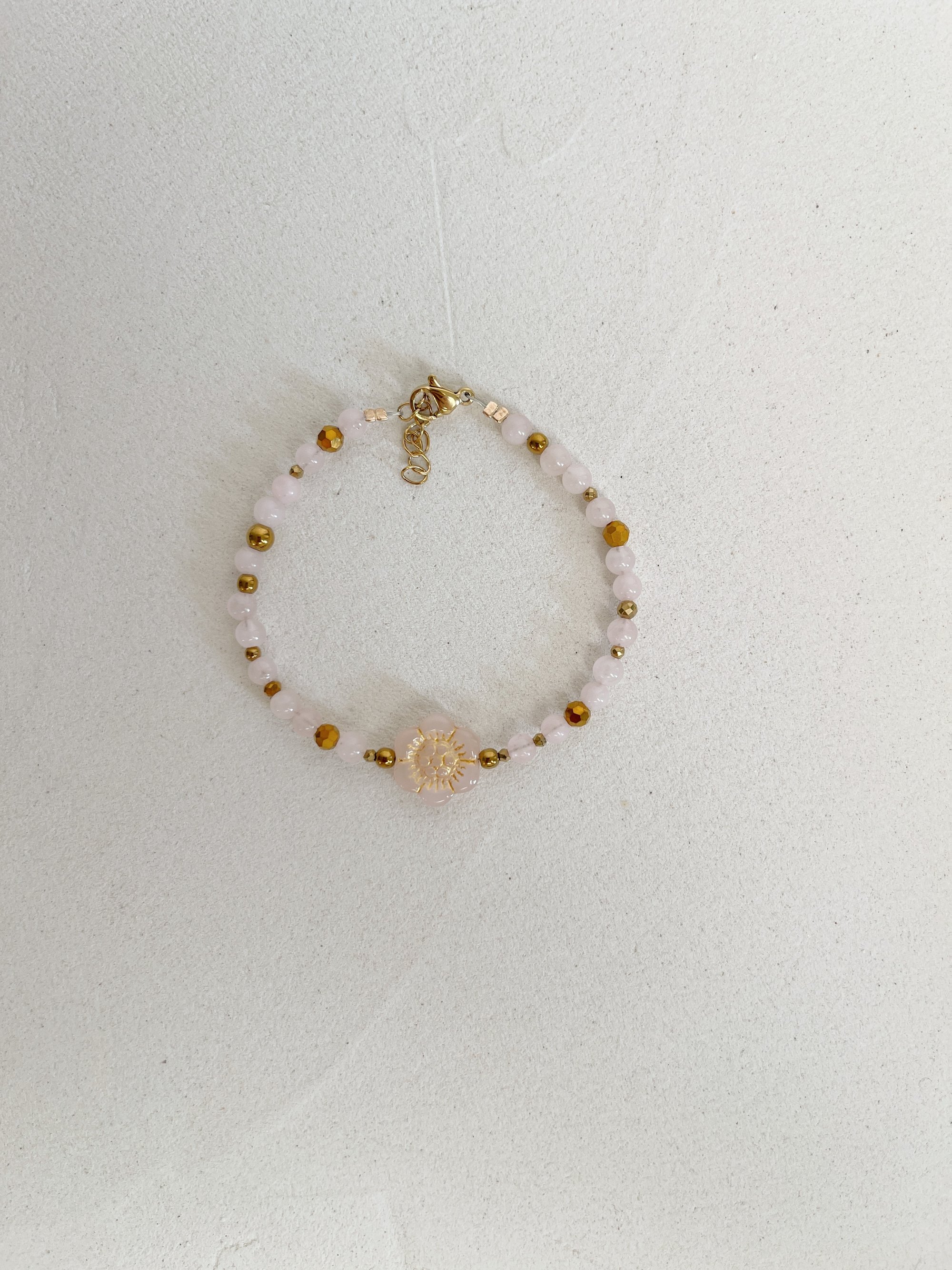 Bracelet PEONIE // Fleur rose et perles Quartz Rose