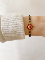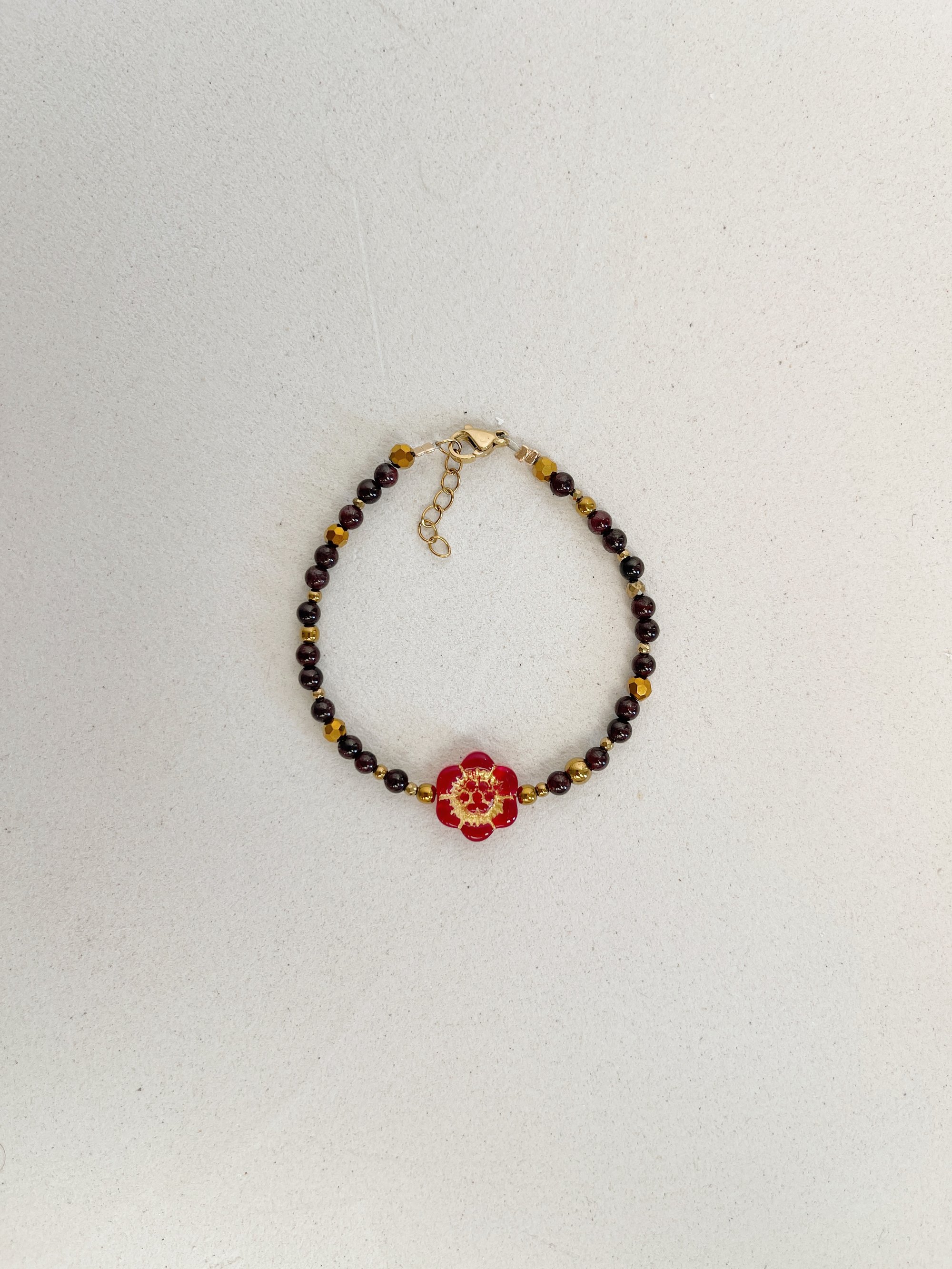 Ici la version fleur rouge, avec des perles de grenat (pierre naturelle)