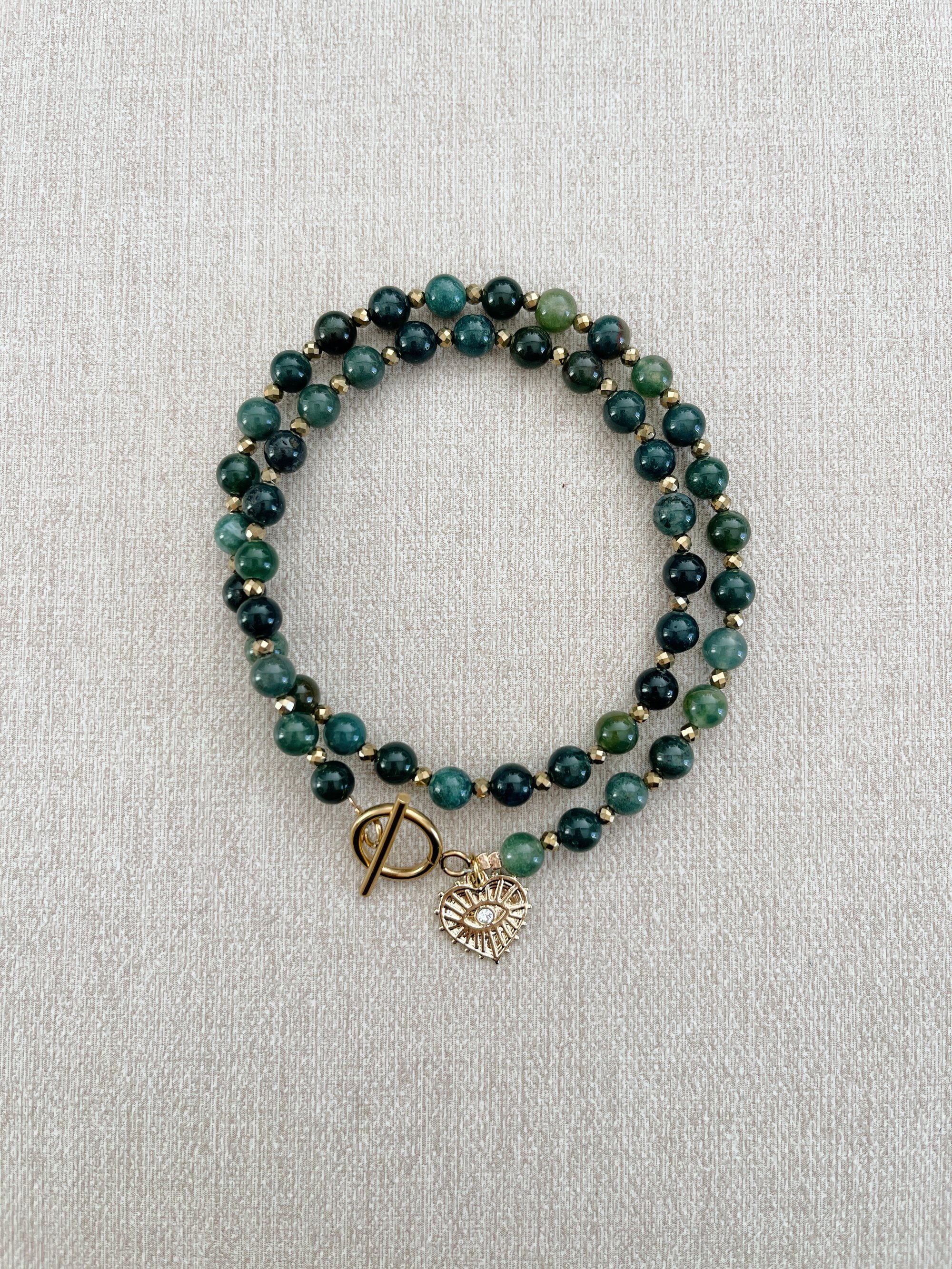 Ici la version Agate mousse, pierre naturelle dans un variation de ton vert à vert foncé