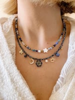 Au centre, un œil turc porte bonheur en verre blanc et une étoile en nacre.