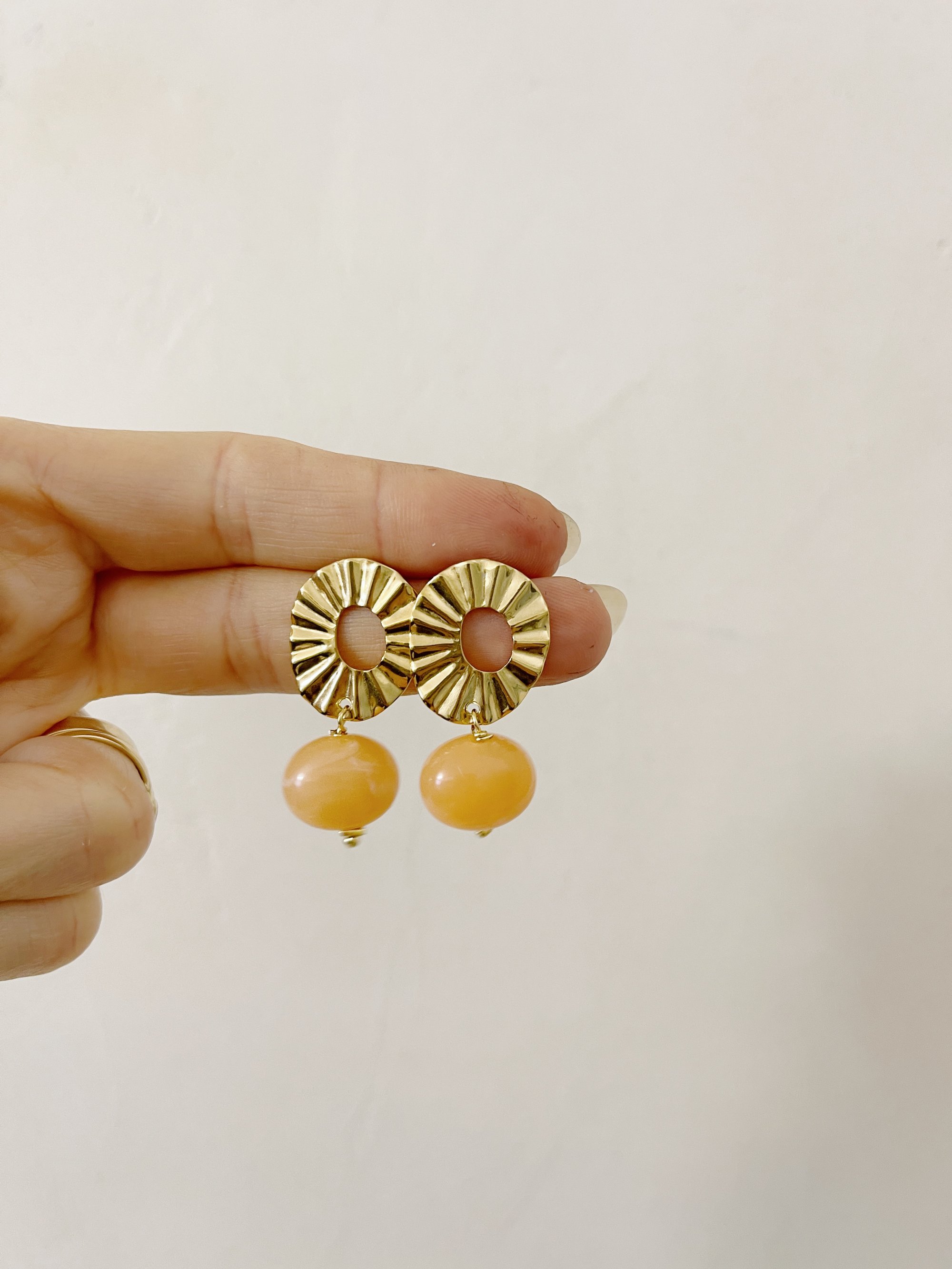 Les BO EDEN sont composées d'une monture tige en acier inoxydable doré et d'une perle en résine pêche. Très légères, elles sont proposées dans plusieurs couleurs ! Il existe également un collier ras de cou et un bracelet du même nom :)